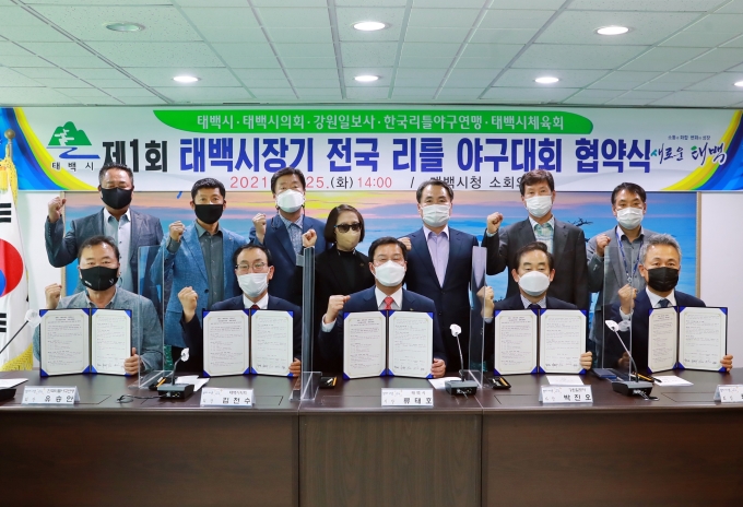 | 제1회 태백시장기 전국리틀야구대회 협약식.[사진=태백시청] 2021.05.25 onemoregive@newspim.com |