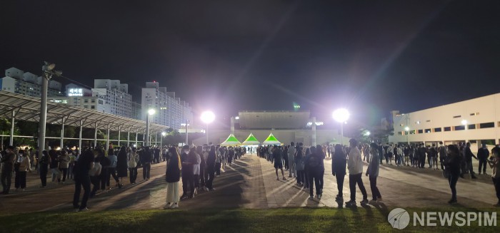 [광주=뉴스핌] 전경훈 기자 = 26일 오후 광주시청 야외음악당에 설치된 선별검사소에서 시민들이 코로나19 검사를 받기 위해 줄지어 기다리고 있다. 최근 터미널, 극장, 식당 등이 밀집한 광주 유스퀘어에서 코로나19 확진자가 잇따라 나오면서 검사량이 급증하고 있다. 2021.05.26 kh10890@newspim.com