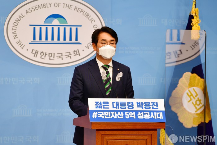[서울=뉴스핌] 최상수 기자 = 대선 출마를 선언한 박용진 더불어민주당 의원이 10일 오전 국회 소통관에서 정책 관련 기자회견을 하고 있다. 2021.06.10 kilroy023@newspim.com