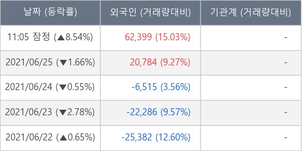 [표] 외국인ㆍ기관 순매매량 (단위 주)