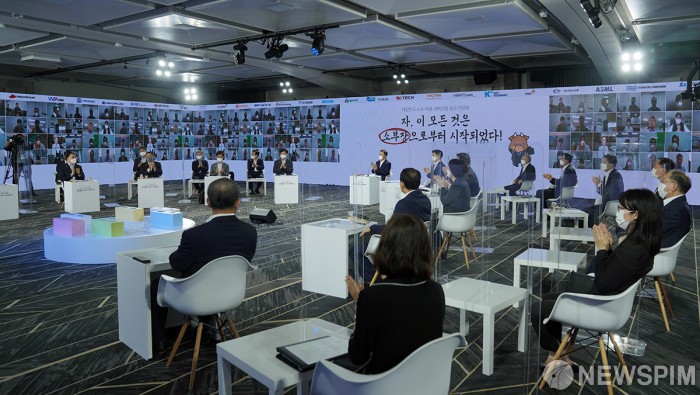 [서울=뉴스핌] 문재인 대통령이 2일 오전 서울 강남구 코엑스 아셈볼룸에서 열린 대한민국 소재·부품·장비산업 성과 간담회에서 발언하고 있다.[사진=청와대] 2021.07.02 photo@newspim.com