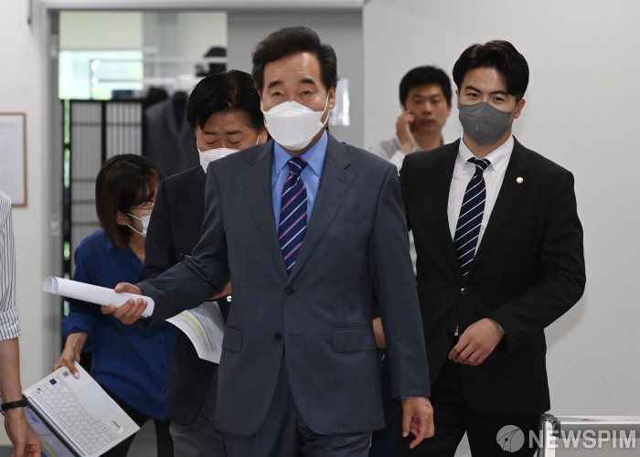[서울=뉴스핌] 이형석 기자 = 이낙연 더불어민주당 전 대표가 6일 오전 토지공개념 관련 기자회견을 위해 국회 소통관으로 들어서고 있다. 2021.07.06 leehs@newspim.com