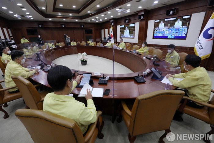 [서울=뉴스핌] 김학선 기자 = 김부겸 국무총리가 18일 서울 종로구 정부서울청사에서 열린 신종 코로나바이러스 감염증(코로나19) 대응 중앙재난안전대책본부회의에서 모두발언을 하고 있다. 김 총리는 이날 회의에서 코로나19의 확산세가 지속되고 있는 것과 관련해 19일부터 비수도권에도 5인 모임 금지를 적용한다고 밝혔다. 2021.07.18 yooksa@newspim.com