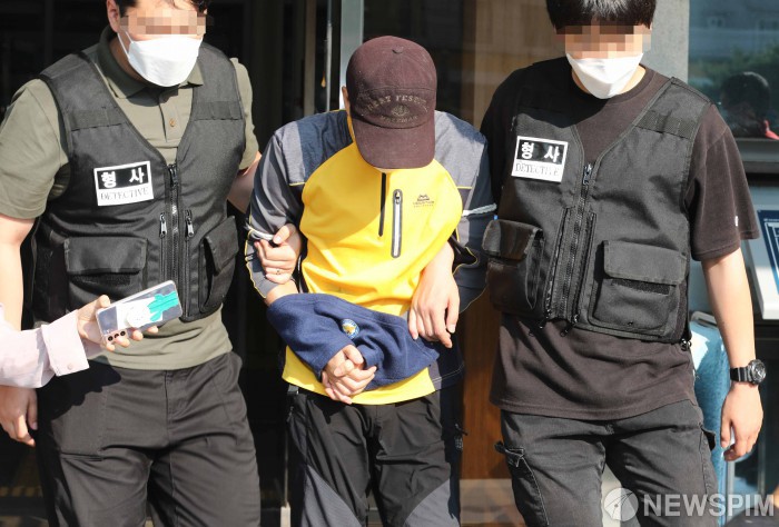 [서울=뉴스핌] 백인혁 기자 = 서울 마포구 동교동의 오피스텔에서 옛 직장 동료를 살해하고 사체를 유기한 40대 남성 A씨가 23일 오전 서울 마포구 마포경찰서에서 서울서부지방검찰청으로 송치되고 있다. A씨는 지난 13일 과거 증권회사 동기인 40대 남성 B씨가 일하던 오피스텔 사무실로 찾아가 흉기로 살해한 혐의를 받고 있다. 2021.07.23 dlsgur9757@newspim.com