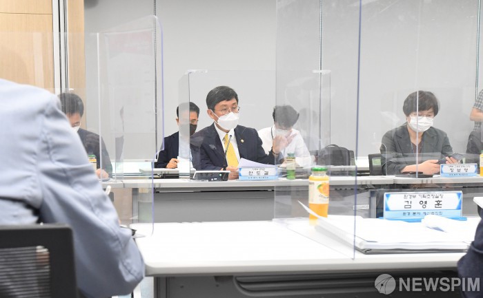 [오송=뉴스핌] 안도걸 기획재정부 차관이 7월 27일 충북 오송 소재 온실가스종합정보센터에서 열린 '환경 분야 예산협의회'에서 모두발언을 하고 있다. [사진=기획재정부] 2021.07.27 photo@newspim.com