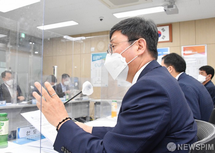 [오송=뉴스핌] 안도걸 기획재정부 차관이 7월 27일 충북 오송 소재 온실가스종합정보센터에서 열린 '환경 분야 예산협의회'에서 모두발언을 하고 있다. [사진=기획재정부] 2021.07.27 photo@newspim.com
