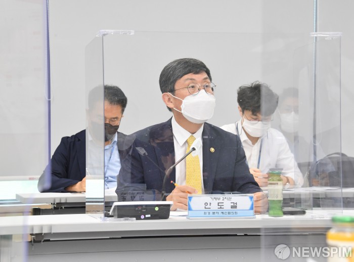 [오송=뉴스핌] 안도걸 기획재정부 차관이 7월 27일 충북 오송 소재 온실가스종합정보센터에서 열린 '환경 분야 예산협의회'에서 모두발언을 하고 있다. [사진=기획재정부] 2021.07.27 photo@newspim.com