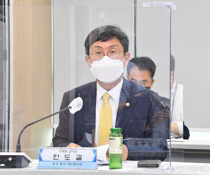 [오송=뉴스핌] 안도걸 기획재정부 차관이 7월 27일 충북 오송 소재 온실가스종합정보센터에서 열린 '환경 분야 예산협의회'에서 모두발언을 하고 있다. [사진=기획재정부] 2021.07.27 photo@newspim.com