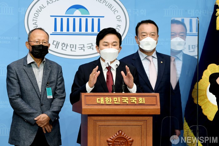 [서울=뉴스핌] 이형석 기자 = 원희룡 제주지사가 29일 오전 서울 여의도 국회 소통관에서 '원희룡의 국가찬스 1호 공약 : 주택 국가찬스' 기자회견을 열고 있다. 2021.07.29 leehs@newspim.com