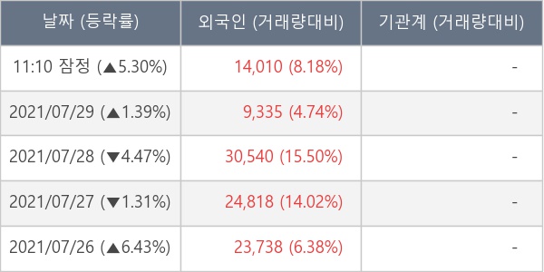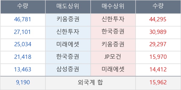 [표] 외국인ㆍ기관 순매매량 (단위 주)