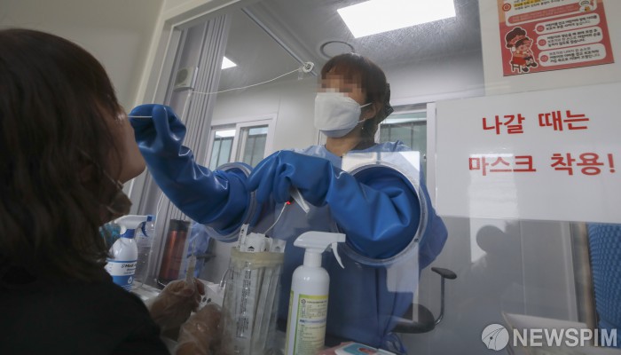 | [서울=뉴스핌] 최상수 기자 = 코로나19 확진자가 25일째 1000명대를 기록하는 가운데 한 시민이 31일 오후 서울 금천구 보건소 선별진료소에서 검체 채취를 받고 있다. 2021.07.31 kilroy023@newspim.com |