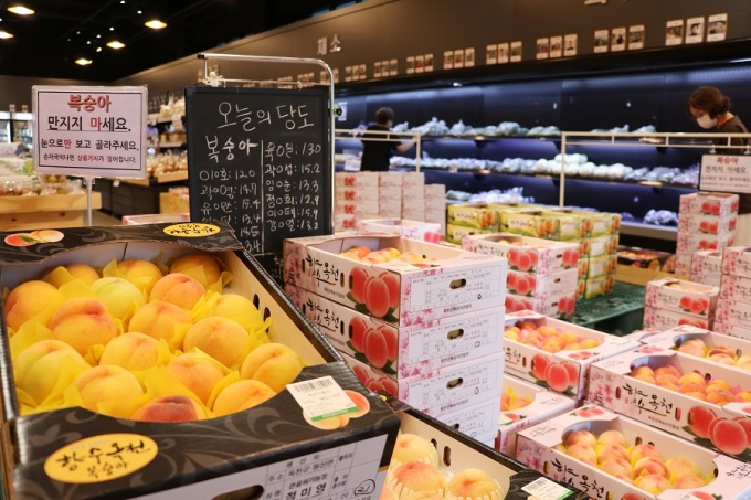 [옥천=뉴스핌] 백운학 기자 =지난 2019년 5월 개장한 충북 옥천로컬푸드직매장이 최근 제철 농산물인 포도·복숭아 인기에 힘입어 매출이 늘었다.