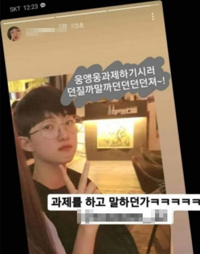 | 과거 안산 선수가 자신의 SNS에 '웅앵웅'이라는 표현을 사용한 게시글을 올렸다. 해당 표현은 여초 커뮤니티에서 남성 혐오표현으로 사용된다.[사진=독자 제공] 2021.08.05 kh10890@newspim.com |