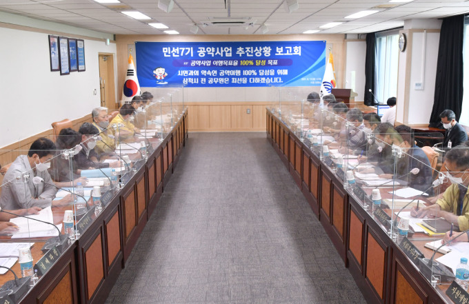 [삼척=뉴스핌] 이형섭 기자 = 강원 삼척시는 13일 민선7기 공약사항 추진상황 보고회를 시청 상황실에서 가졌다.