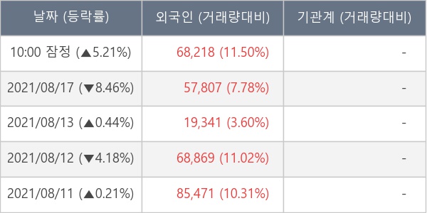 [표] 외국인ㆍ기관 순매매량 (단위 주)