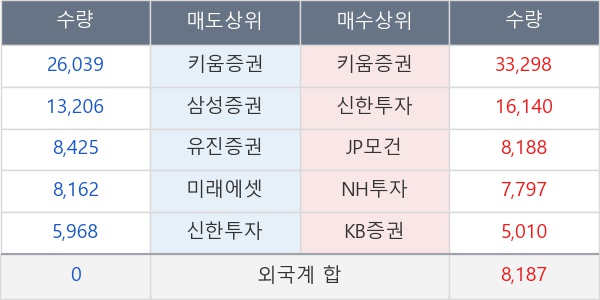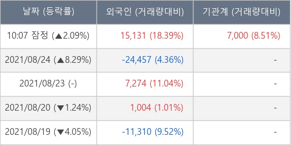 [표] 주요 기관별 순매매량 (단위 주)