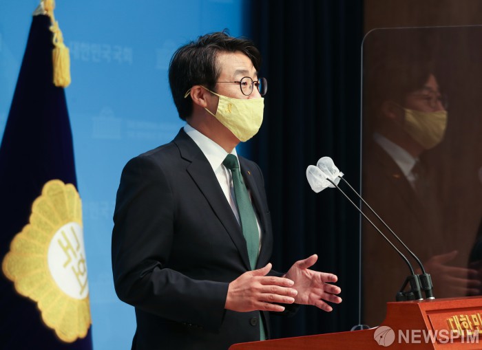 [서울=뉴스핌] 이형석 기자 = 김윤기 정의당 전 부대표가 2일 국회 소통관에서 제20대 대통령 선거 출마를 선언하고 있다. 2021.09.02 leehs@newspim.com