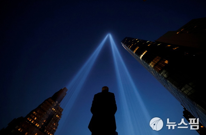 | [뉴욕 로이터=뉴스핌] 이영기 기자 =11일(현지시간) 미국 뉴욕에서는 911테러 20주년을 맞아 뉴욕시 911추모공원에서는 애도하는 조명들이 한 곳을 향하고 있다. 2021.09.13 007@newspim.com |