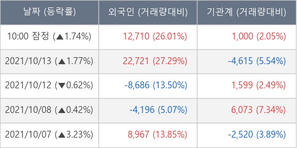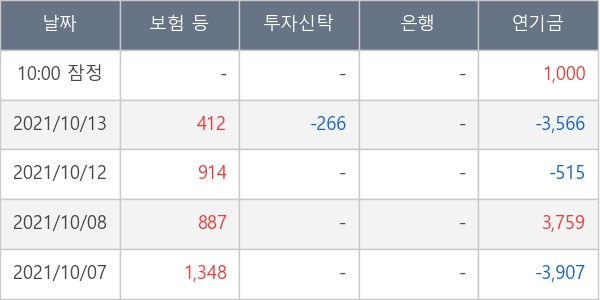 [표] 주요 기관별 순매매량 (단위 주)
