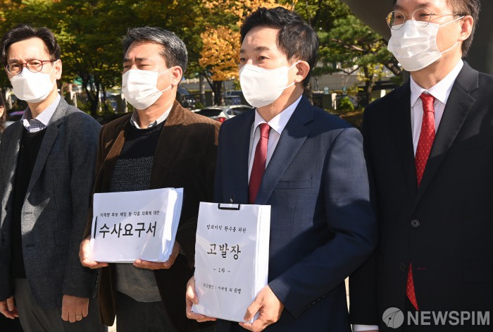 [서울=뉴스핌] 국회사진취재단 = 원희룡 전 제주지사가 25일 오전 이재명 경기도지사 등을 고발하기 위해 고발장을 들고 대검찰청으로 들어가고 있다. 2021.10.25 photo@newspim.com