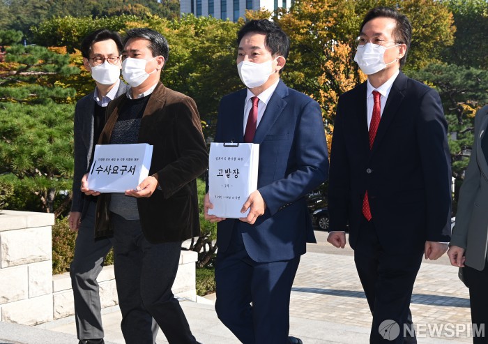 [서울=뉴스핌] 국회사진취재단 = 원희룡 전 제주지사가 25일 오전 이재명 경기도지사 등을 고발하기 위해 고발장을 들고 대검찰청으로 들어가고 있다. 2021.10.25 photo@newspim.com