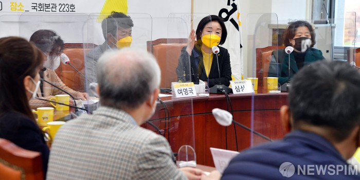[서울=뉴스핌] 최상수 기자 = 정의당 심상정 대선후보가 3일 국회에서 열린 군사상유가족협의회 간담회에서 발언을 하고 있다. 2021.11.03 kilroy023@newspim.com