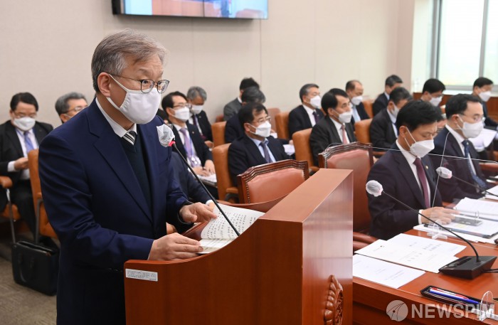 [서울=뉴스핌] 이형석 기자 = 권칠승 중소벤처기업부 장관이 8일 서울 여의도 국회에서 열린 산업통상자원중소벤처위원회 전체회의에서 2022년도 예산안에 대한 제안설명을 하고 있다. 2021.11.08 leehs@newspim.com