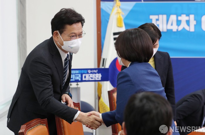 참석자들과 인사 나누는 송영길 더불어민주당 대표