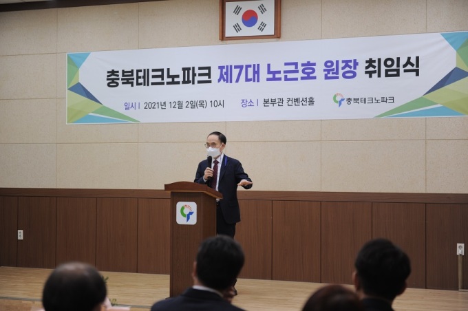[청주=뉴스핌] 백운학 기자 =제7대 충북테크노파크 노근호 원장이 2일 취임했다.