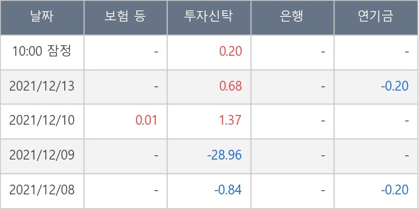 [표] 주요 기관별 순매매량 (단위 만주)
