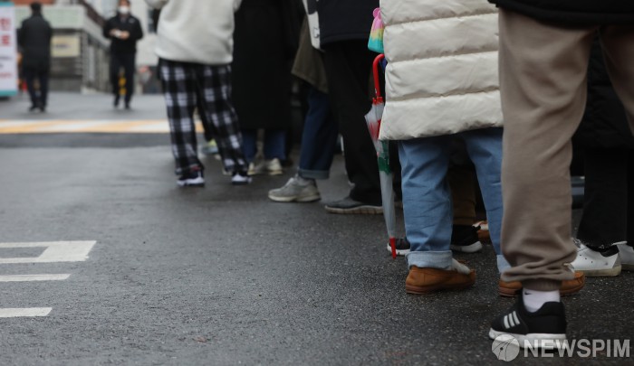 | [서울=뉴스핌] 김민지 인턴기자 = 코로나19 신규 확진자가 7850명으로 발표된 15일 오전 서울 종로구보건소 선별진료소에서 시민들이 검사를 받기 위해 기다리고 있다. 이날 위중증 환자는 964명, 사망자는 70명으로 집계됐다. 2021.12.15 kimkim@newspim.com |