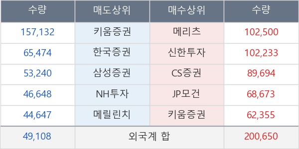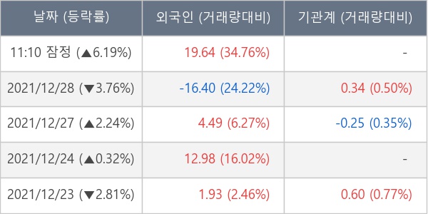 [표] 외국인ㆍ기관 순매매량 (단위 만주)