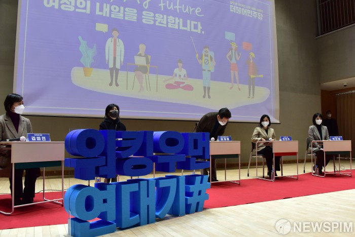 [서울=뉴스핌] 국회사진취재단 = 이재명 더불어민주당 대선후보가 10일 동작구 대방동 페이스살림에서 열린 ‘일하는 여성을 위한 스타트업 대표 간담회’에 참석해 인사를 하고 있다. 2022.01.10 photo@newspim.com