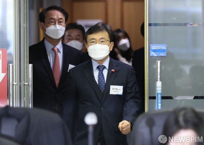 [서울=뉴스핌] 황준선 기자 = 권덕철 보건복지부 장관이 13일 오후 서울 서초구 코트라에서 열린 복지부·산업부 공동 주재 백신·원부자재 기업투자 촉진회의에 참석하고 있다. 2022.01.13 hwang@newspim.com