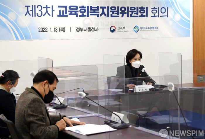 [서울=뉴스핌] 김학선 기자 = 유은혜 사회부총리 겸 교육부 장관이 13일 서울 종로구 정부서울청사에서 열린 제3차 교육회복지원위원회 회의에서 인사말을 하고 있다. 2022.01.13 yooksa@newspim.com