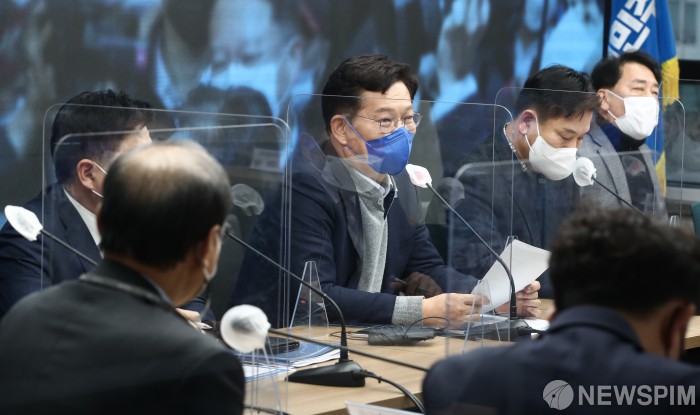 [서울=뉴스핌] 이형석 기자 = 송영길 더불어민주당 대표가 13일 서울 여의도 중앙당사에서 열린 남부권경제대책위원회 출범식에 참석해 축사를 하고 있다. 2022.01.13 leehs@newspim.com