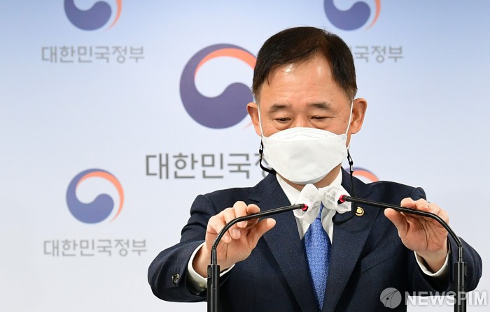 [서울=뉴스핌] 김학선 기자 = 박화진 고용노동부 차관이 20일 서울 종로구 정부서울청사에서 중대재해처벌법 시행 준비상황과 관련 브리핑을 하고 있다. 2022.01.20 yooksa@newspim.com