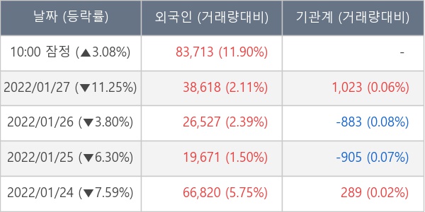[표] 외국인ㆍ기관 순매매량 (단위 주)