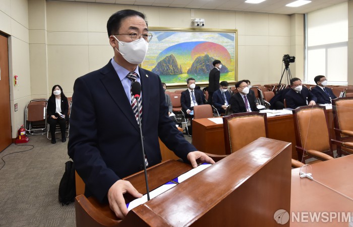 [서울=뉴스핌] 이형석 기자 = 김세환 중앙선관위 사무총장이 9일 서울 여의도 국회에서 열린 정치개혁특위 전체회의에서 코로나19 확진자 투표권 보장 관련 설명을 하고 있다. 2022.02.09 leehs@newspim.com
