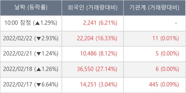 [표] 외국인ㆍ기관 순매매량 (단위 주)