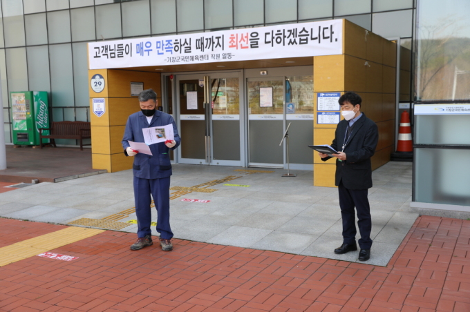 [부산=뉴스핌] 박성진 기자 = 오규석 기장군수는 16일 오전 정부의 단계적 일상회복 조치에 발맞춰 지난 4일부터 전면 개방한 기장군국민체육센터의 수영장과 헬스장 등을 방문해 점검했다.