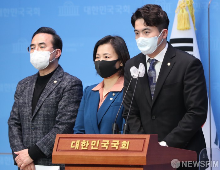 [서울=뉴스핌] 김민지 기자 = 오영환 신임 더불어민주당 대변인이 27일 서울 여의도 국회 소통관에서 열린 민주당 원내대변인단 발표 기자회견에서 발언하고 있다. 2022.03.27 kimkim@newspim.com