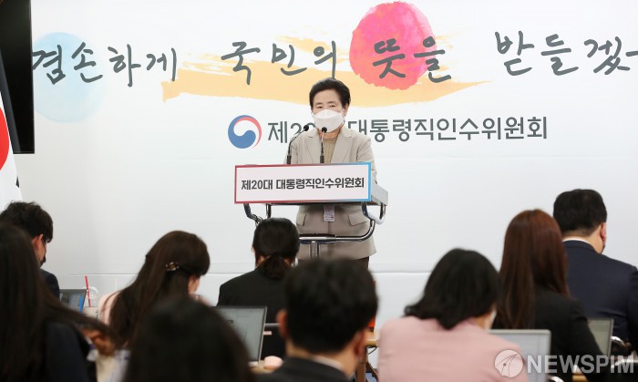 [서울=뉴스핌] 정일구 기자 = 신용현 제20대 대통령직인수위원회 대변인이 2일 오후 서울 종로구 통의동 인수위 기자회견장에서 정례 브리핑을 하고 있다. 2022.05.02 mironj19@newspim.com