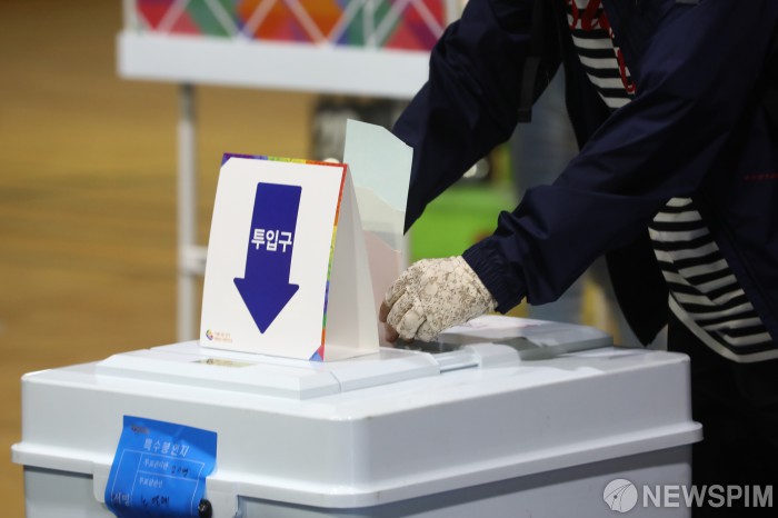 [서울=뉴스핌] 김민지 기자 = 제8회 전국동시지방선거일인 1일 오후 서울 서대문구 홍제배드민턴장에 마련된 투표소에서 시민들이 투표를 하고 있다. 일반 유권자 투표는 오후 6시까지, 코로나19 확진자의 경우 오후 6시 30분부터 7시 30분까지 할 수 있다. 2022.06.01 kimkim@newspim.com