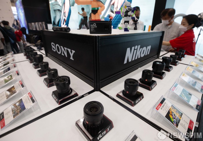 [서울=뉴스핌] 윤창빈 기자 = 15일 서울 강남구 코엑스에서 열린 제31회 서울국제사진영상전에서 관람객들이 카메라 렌즈를 살펴보고 있다. 2022.06.15 pangbin@newspim.com