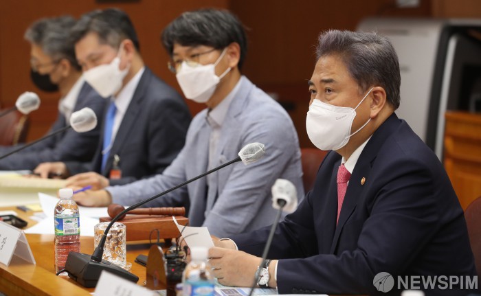 [서울=뉴스핌] 김학선 기자 = 박진 외교부 장관이 24일 서울 종로구 정부서울청사에서 열린 공공외교위원회 제6차 회의에 참석해 발언하고 있다. 2022.08.24 yooksa@newspim.com