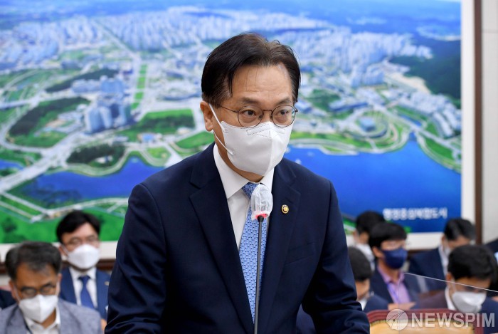 [서울=뉴스핌] 김민지 기자 = 이상래 행정중심복합도시건설청장이 5일 오전 서울 여의도 국회에서 열린 국토교통위원회 전체회의에서 제안설명을 하고 있다. (공동취재사진) 2022.09.05 photo@newspim.com