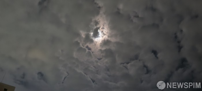 [광주=뉴스핌] 조은정 기자 = 추석인 10일 오후 광주 서구 치평동 하늘에 보름달이 구름에 가려져 있다. 2022.09.11 ej7648@newspim.com