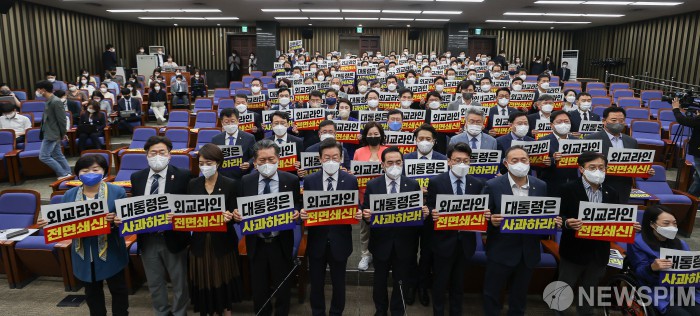 [서울=뉴스핌] 최상수 기자 = 이재명 더불어민주당 대표, 박홍근 원내대표를 비롯한 의원들이 29일 서울 여의도 국회에서 열린 의원총회에서 피켓을 들고 구호를 외치고 있다. 2022.09.29 kilroy023@newspim.com