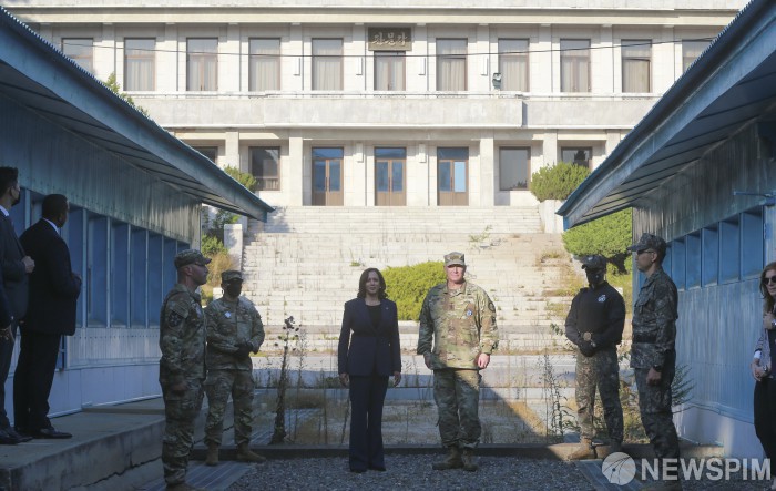 [판문점=뉴스핌] 이형석 기자 = 카멀라 해리스 미국 부통령이 29일 오후 경기 파주시 판문점을 찾아 둘러보고 있다. 2022.09.29 leehs@newspim.com